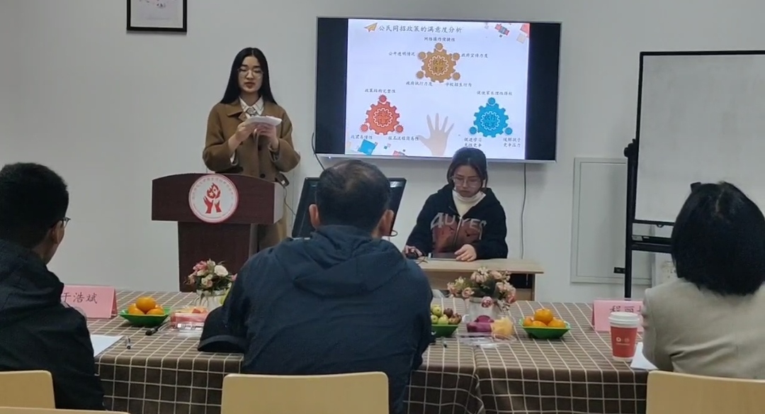 沈晨雯团队以杭州市幼升小公民同招政策对幼儿园学生家长的影响为研究对象,通过针对性的调研分析,指出政策方面存在的痛点、不足,并提出相关建议。王子涵团队从杭州红色教育基地的基本信息入手,对其现状进行描述性分析与满意度分析,全面的调查和精准的数据为红色教育的普及提供有效的建议。包娜萍团队对乡村振兴战略背景下,杭州市村民对乡村文化产业建设满意度进行调查,他们从统计学、社会学等多学科角度,聚焦杭州市乡村文化产业建设现状,剖析其中存在问题和不足,提出针对性建议和对策。