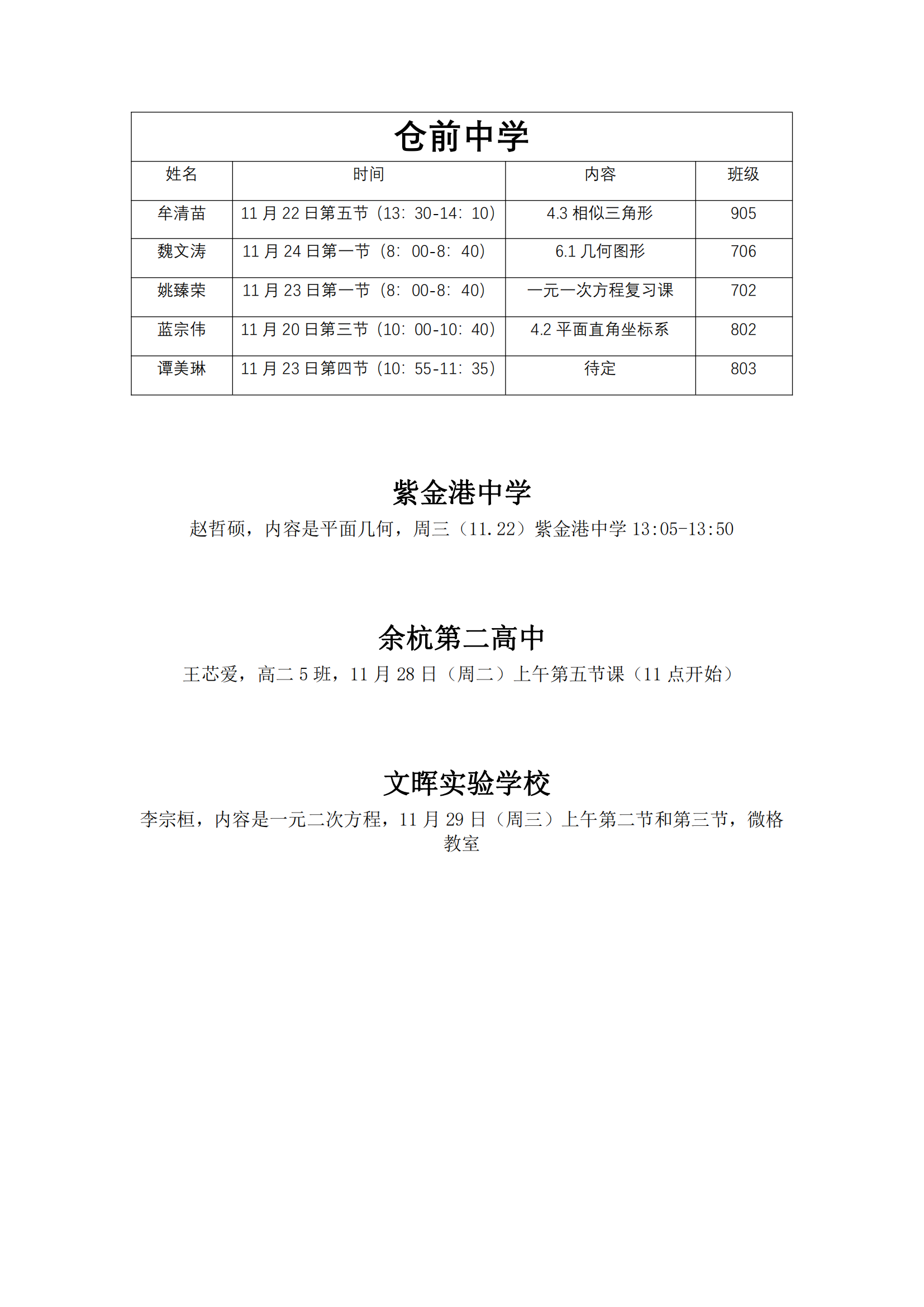 黄色网站 2023-2024学年第一学期仓前中学等4个点实习生公开课安排