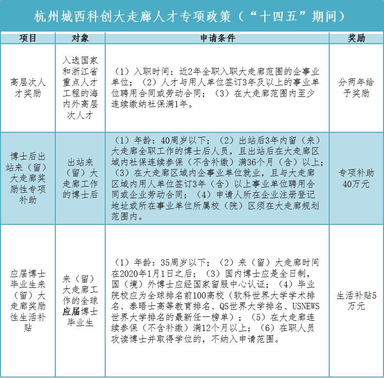 3.杭州城西科创大走廊人才专项政策