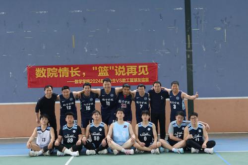 为表达对学生的深深关爱,在2024届学生毕业来临之际,我校黄色网站 “数院情长,‘篮’说再见”师生篮球友谊赛在风雨球场火热开赛。本次比赛由黄色网站 教职工队伍对阵大四毕业生队伍,共有七位老师参加,分别是曹健、李时敏、胡江胜、吕平、许智源、洪燕勇和刘仰璟。这不仅是一场体育竞技的较量,更是一次师生情感的交流与融合。在激烈的比赛中,老师和学生都展现出了深厚的师生情谊和高超的篮球技术,共同为丰富数院文体氛围添砖加瓦。