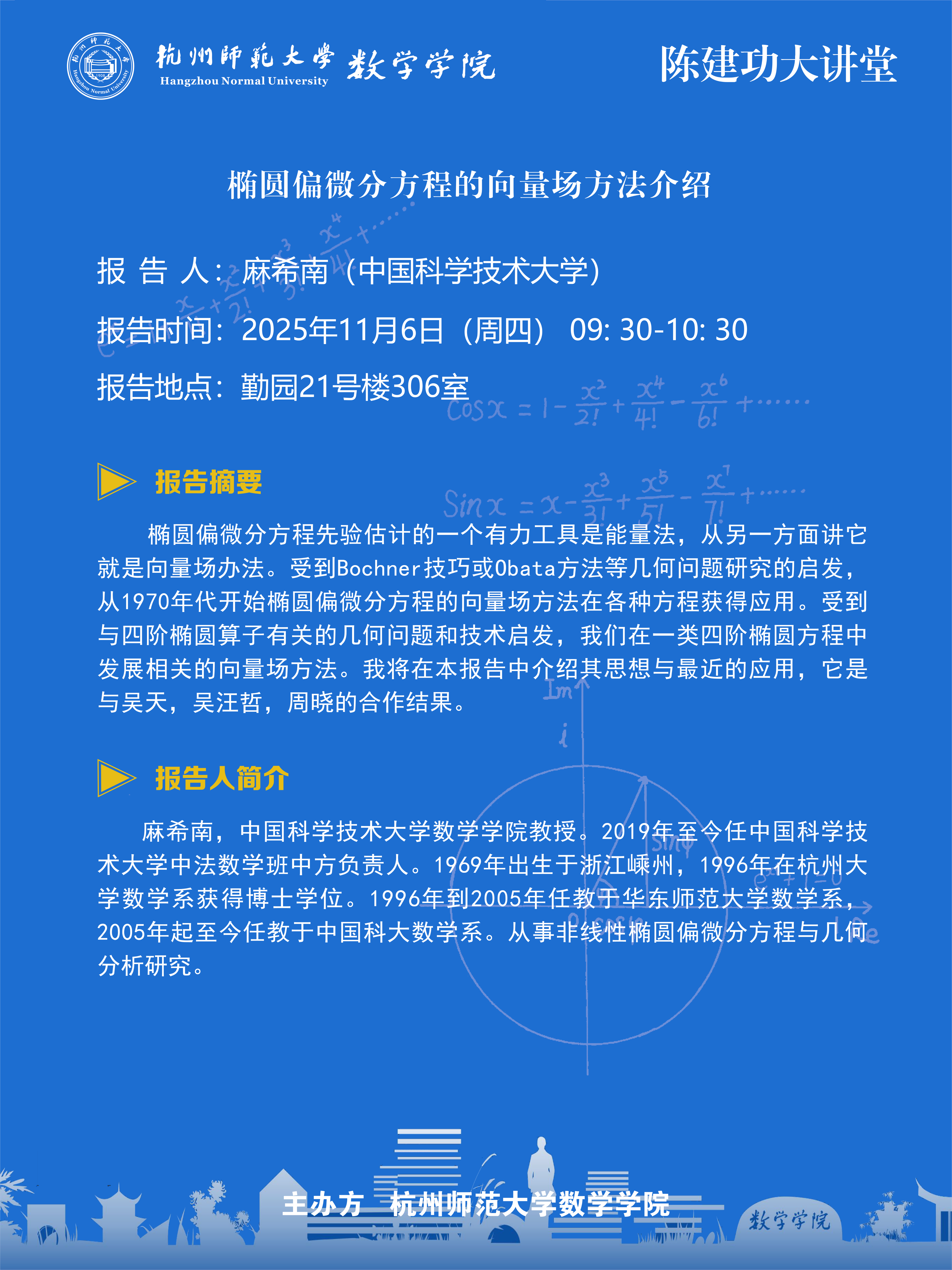 陈建功大讲堂(2025-112):椭圆偏微分方程的向量场方法介绍