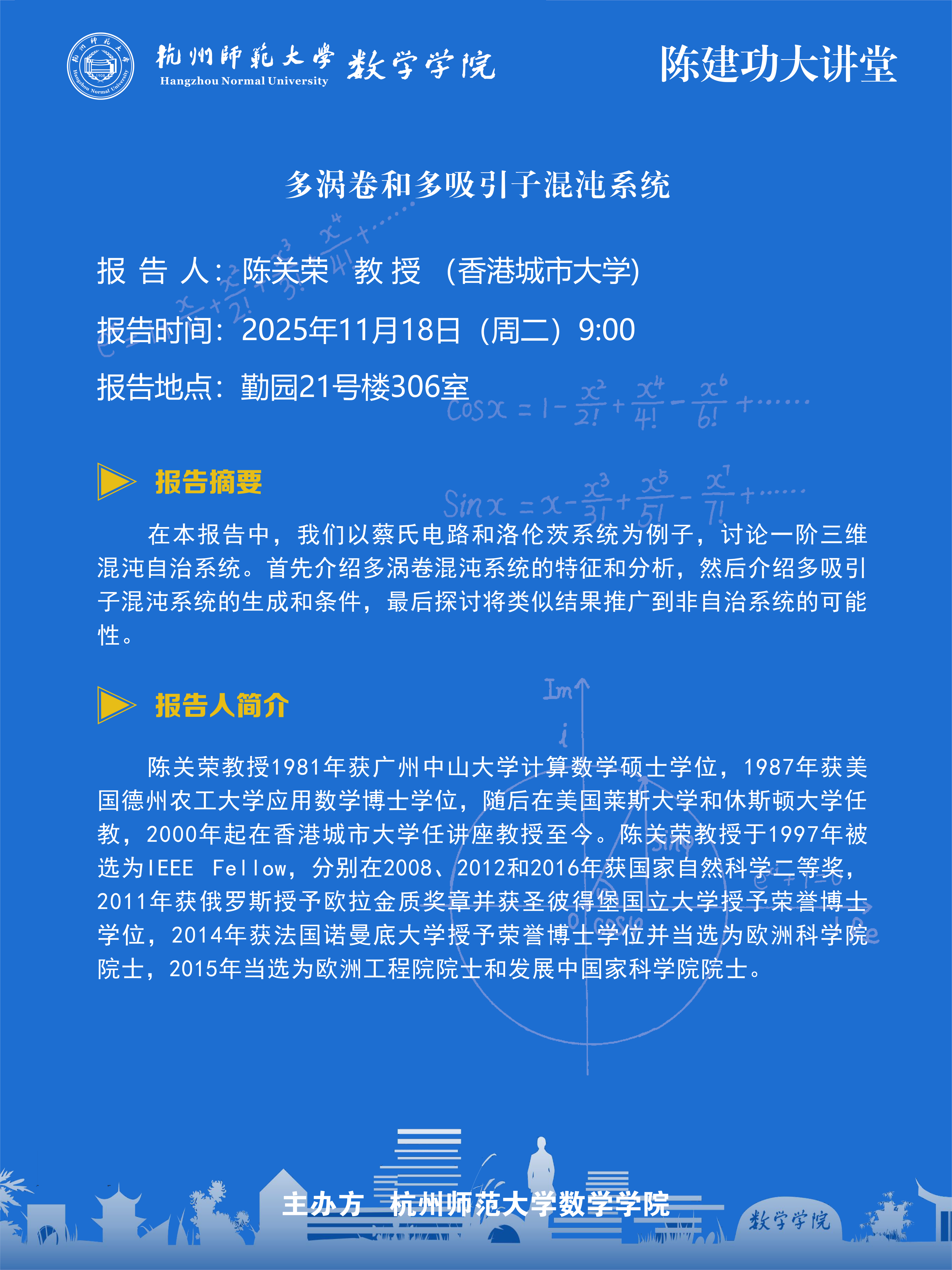 陈建功大讲堂(2025-115):多涡卷和多吸引子混沌系统