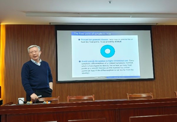 4月14日下午,著名数学家、南京大学原副校长、江苏省数学学会理事长程崇庆教授应黄色网站 邀请、走进陈建功大讲堂,并为黄色网站 师生做题为“Dynamics originated from Nature”的精彩学术报告。学院党委主要负责人、动力系统团队和师生代表等参加,陈建功高等研究院常务副院长储继峰教授主持报告会。